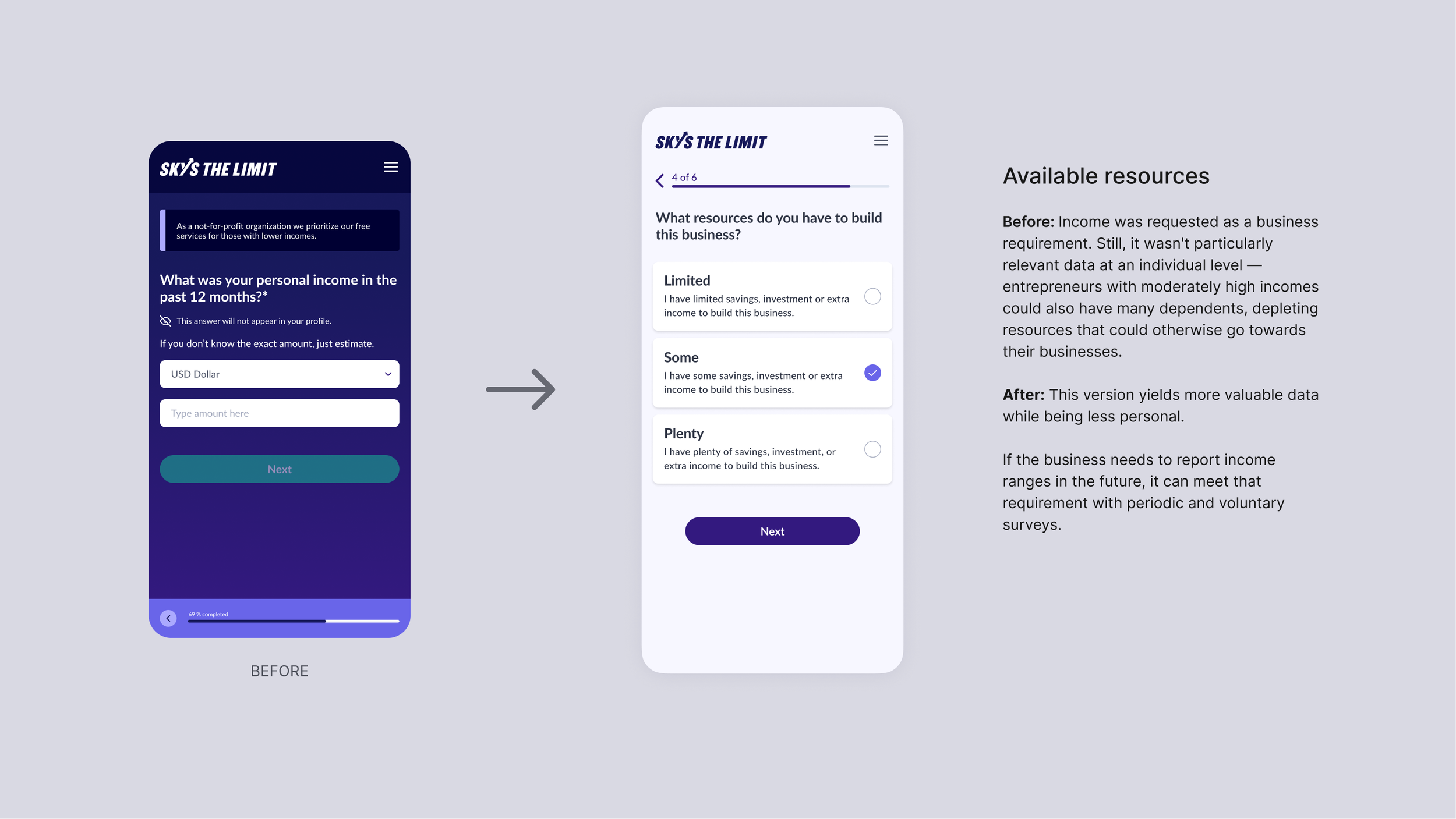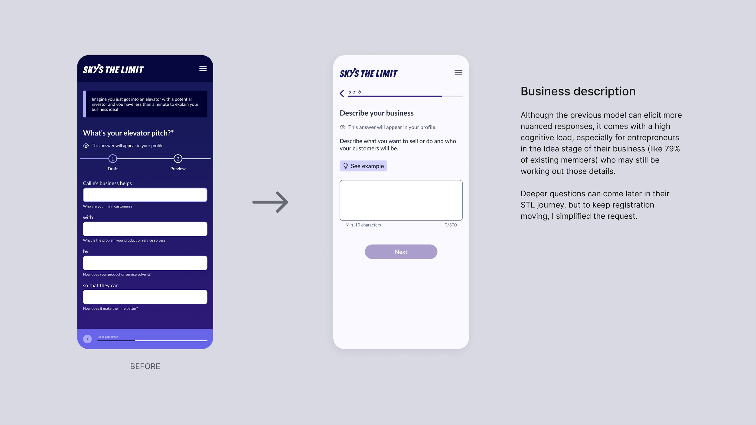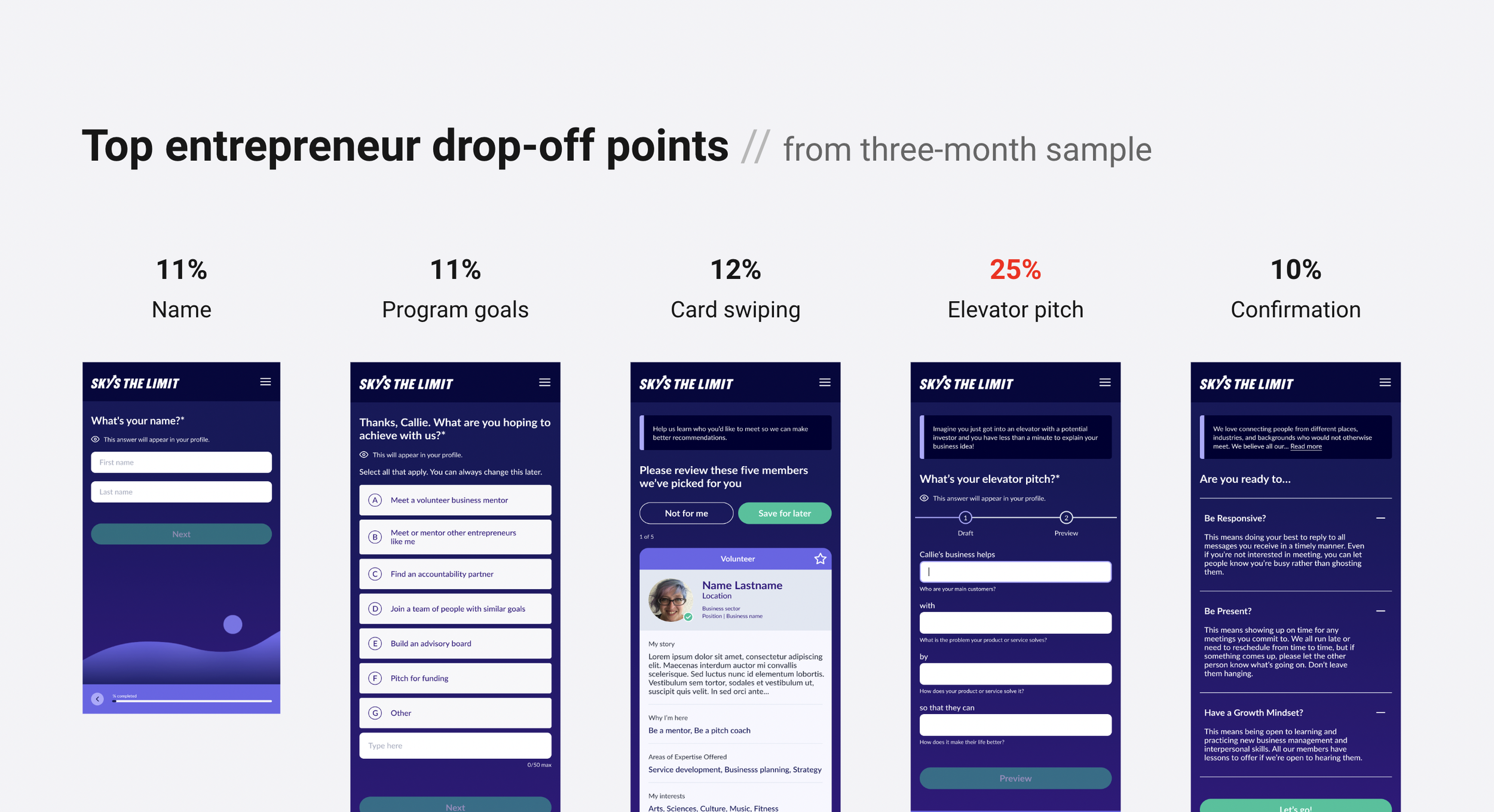 For example, 25% of drop-offs happened on this step which asks entrepreneurs to write a brief description of their business.